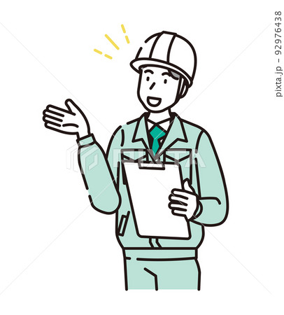 クリップボードを持って働く作業員 白背景