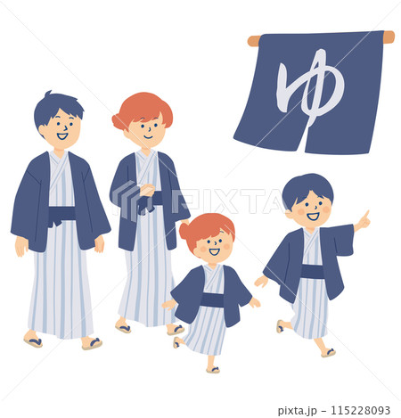 温泉の浴衣を着たファミリーのイラスト
