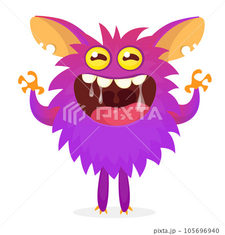Funny cartoon furry monster character. Illustration of cute and happy mythical alien