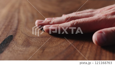 closeup man hand check oiled black walnut surface