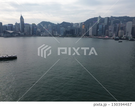 香港オーシャンターミナル付近から香港島ビル群の空撮