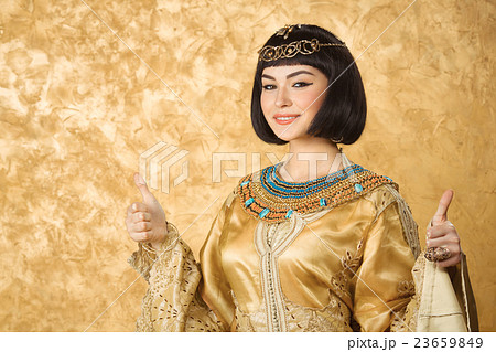 Serious Egyptian woman like Cleopatra with thumbs