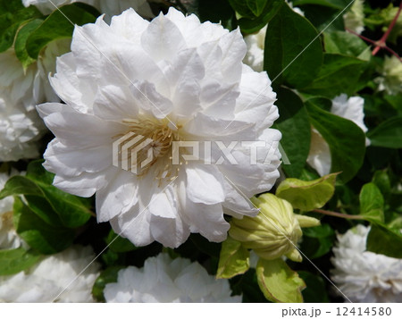 八重咲き、純白のクレマチス。