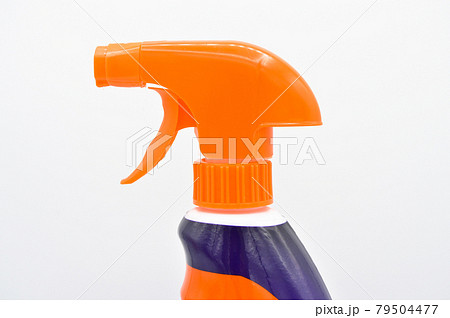 Orange blue colored plastic spray detergent bottle. Cosmetic, container