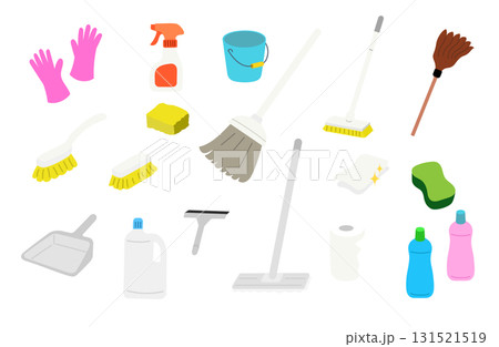 家庭用掃除用品のアイコン風イラスト