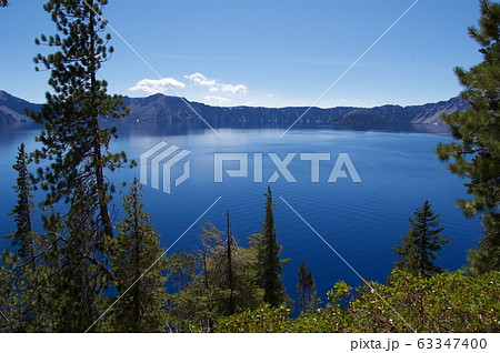 アメリカ クレーターレイク国立公園 夏季 湖 青い 神秘的 大自然 碧