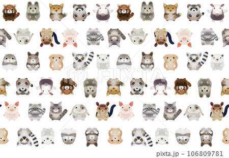 フワフワ動物B シームレスパターン PNG