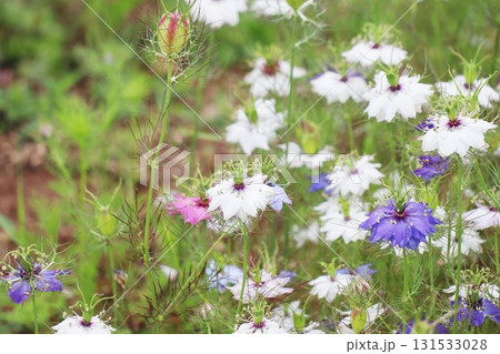糸状の葉があるニゲラの和名はクロタネソウ(【キンポウゲ科】
