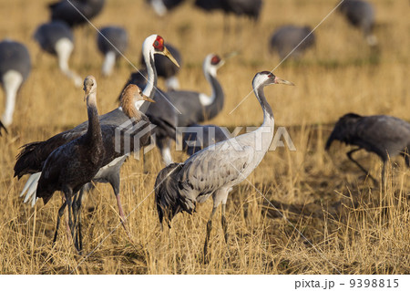 タンチョウの中に紛れ込んだクロヅル(北海道)