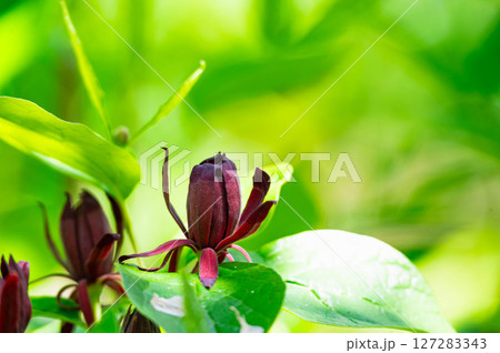 春の公園に咲くチョコレート色のクロバナロウバイの花