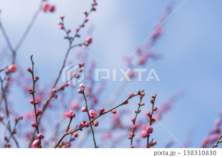 桃色の梅の花と枝と冬の空06