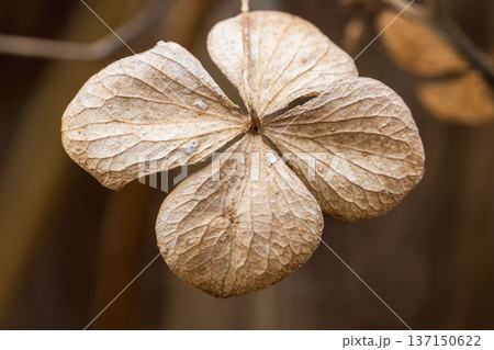 冬の山 枯れたアジサイのクローズアップ05