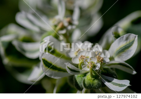 白く縁取られた葉とカワイイ花 ハツユキソウ