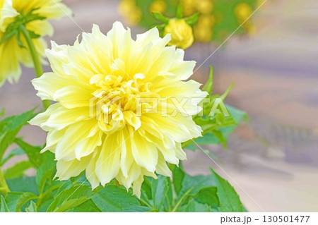 家の周りの草花 四季の色々 秋風にそよぐ白色の大輪の花がダリア園の花畑を彩どっています
