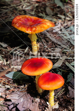 秋の森林に現れた可愛いタマゴダケ