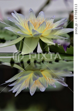 三輪の水に浮かぶ花はパステルカラーの睡蓮花