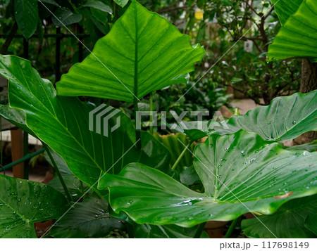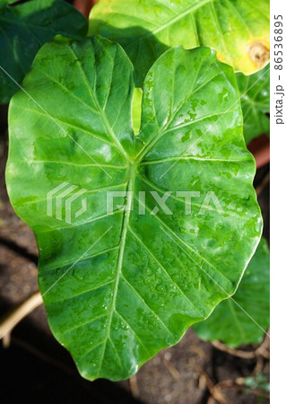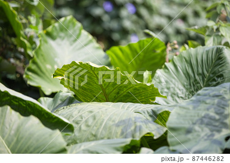 熱帯・亜熱帯植物サトイモ科クワズイモの楕円形の葉