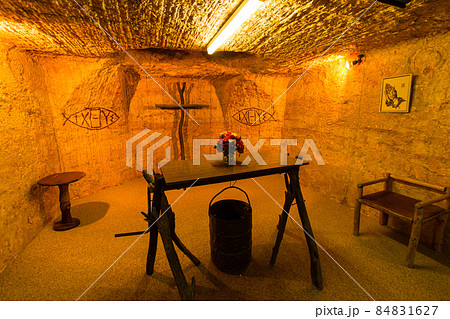 オーストラリア アウトバックにあるクーバーペディのカタコンベ教会の聖堂内