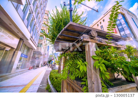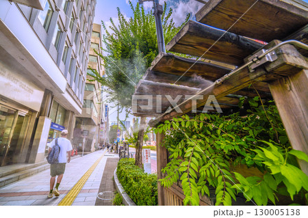 日本の東京都市景観 有楽町駅前に設置されたミストシャワー