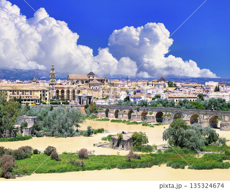 グアダルキビール川に架かる橋とコルドバ歴史地区