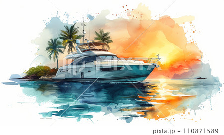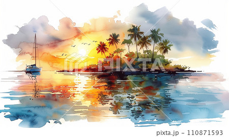 南洋の孤島とヨットと青い海と青い空:精緻CG