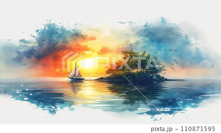 南洋の孤島とヨットと青い海と青い空:精緻CG