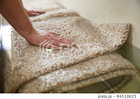 Dirty carpet soaking in special chemical solution in carpet cleaning service