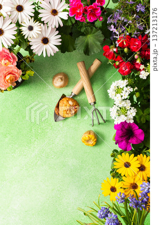 Spring garden decoration with flowers