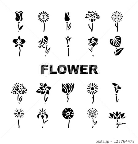 Flower Natural Aromatic Plant Icons Set Vector