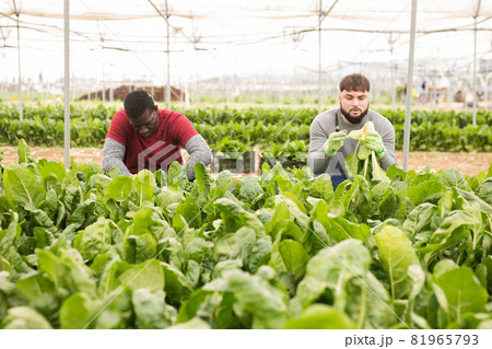 Farmers harvesting Swiss chard