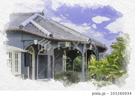 水彩画風 長崎 グラバー園 旧長崎地方裁判所長官舎 長崎県長崎市