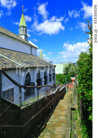 長崎 祈念坂からの大浦天主堂と長崎港 長崎県長崎市