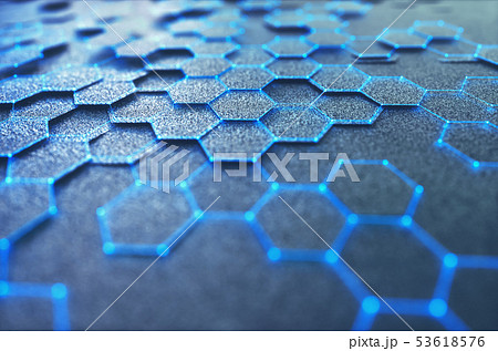 3d Illustration structure of the graphene or carbon surface, abstract nanotechnology hexagonal