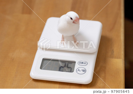 オスの白文鳥の体重測定