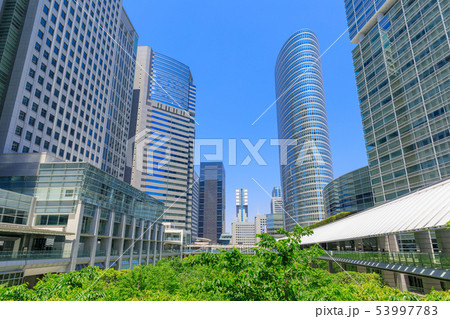 東京 品川駅 高層ビル 新緑と青空 2021年