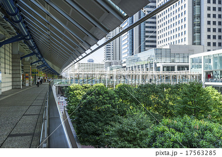 東京 港区港南の都市風景 品川インターシティとペデストリアン・デッキ