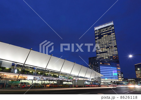 東京都八重洲南口夜景 大丸ビル バスターミナル 都市 ビル群 横