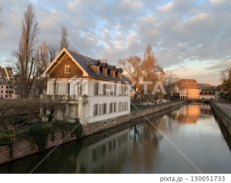 ストラスブールにある世界遺産ラ・プティット・フランスの冬の夕暮れ