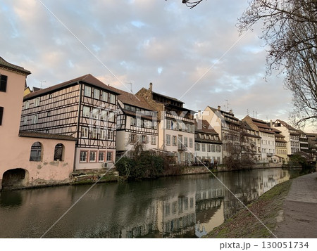 ストラスブールにある世界遺産ラ・プティット・フランスのイル川沿いの風景
