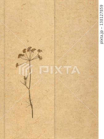 Vintage botanical background with dried herbarium flower, antique paper texture, copy space