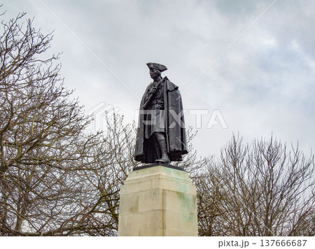 ロンドン・グリニッジ公園に立つジェームズ・ウルフ将軍の銅像