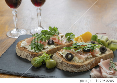 サーモンとキウイのカプレーゼ ドレッシング添え (横縦位)