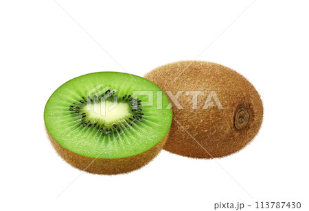 Ripe fresh kiwi fruit and half kiwi fruit isolated on white background. Kiwis fruits isolated with clipping path.