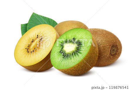 Gold kiwi and a slice isolated. Golden kiwis fruit with clipping path.
