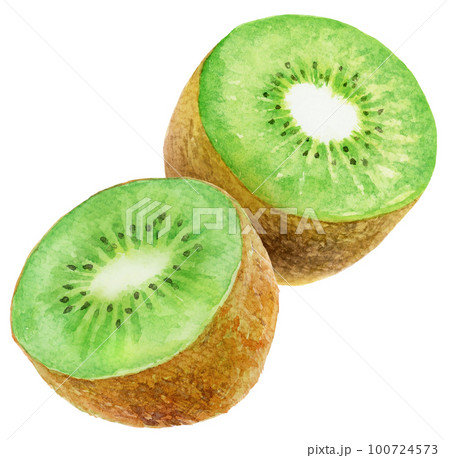 水彩半分にカットしたグリーンキウイ2つ
