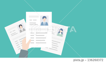 複数の履歴書を比較して選考する採用担当者のベクターイラスト。就職活動・リクルート・人事