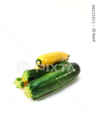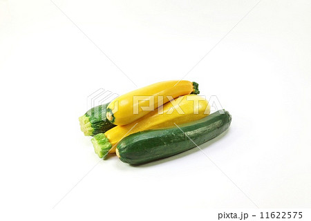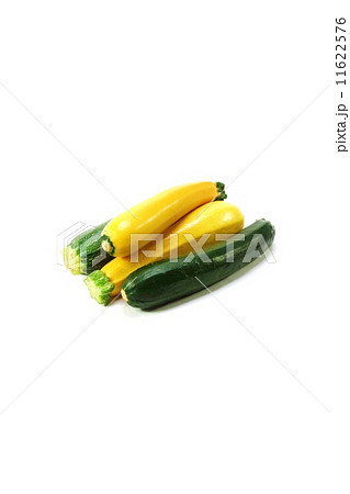 スパゲティー野菜・ズッキーニ緑果種と黄果種各1本ずつ・縦位置