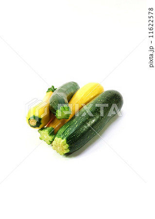 スパゲティー野菜・ズッキーニ緑果種と黄果種各2本ずつ・横位置
