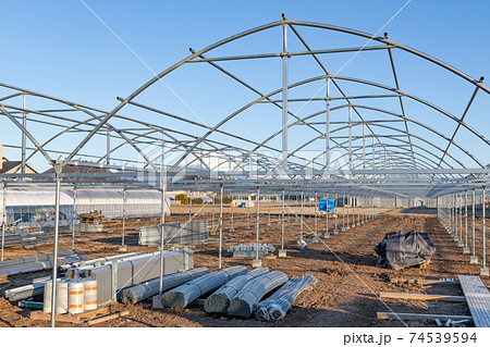 建設中のビニールハウス 田園風景