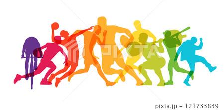 Colorful concept of sports silhouettes athlete. Cycling basketball running soccer competition